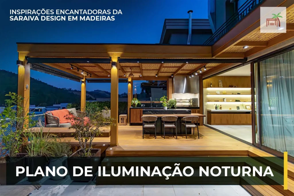 Evite o calor excessivo aproveitando a beleza do seu pergolado à noite. Um plano de iluminação eficaz não apenas adiciona atmosfera, mas também reduz a necessidade de iluminação intensa durante o dia.