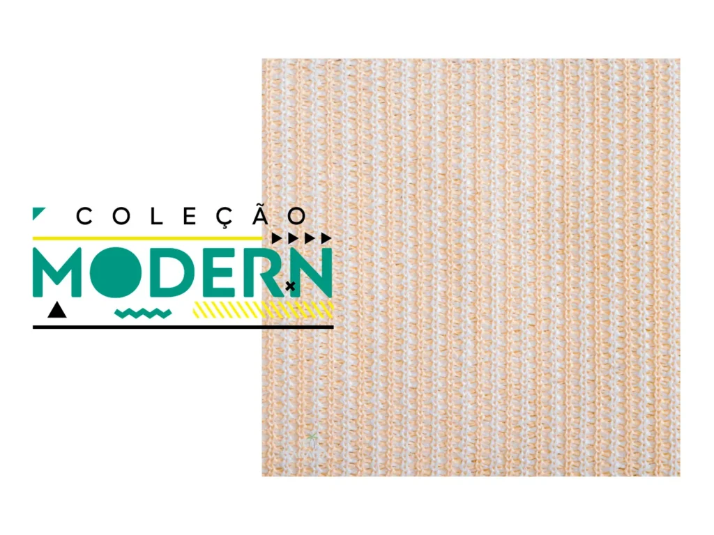 Outra opção é a Coleção Modern, que oferece as mesmas características de resistência, mas com cores mais contemporâneas, como branco e bege. Assim como a Coleção Vintage, é uma escolha versátil e prática para revestir pergolados e estruturas externas, proporcionando sombra e proteção contra intempéries.