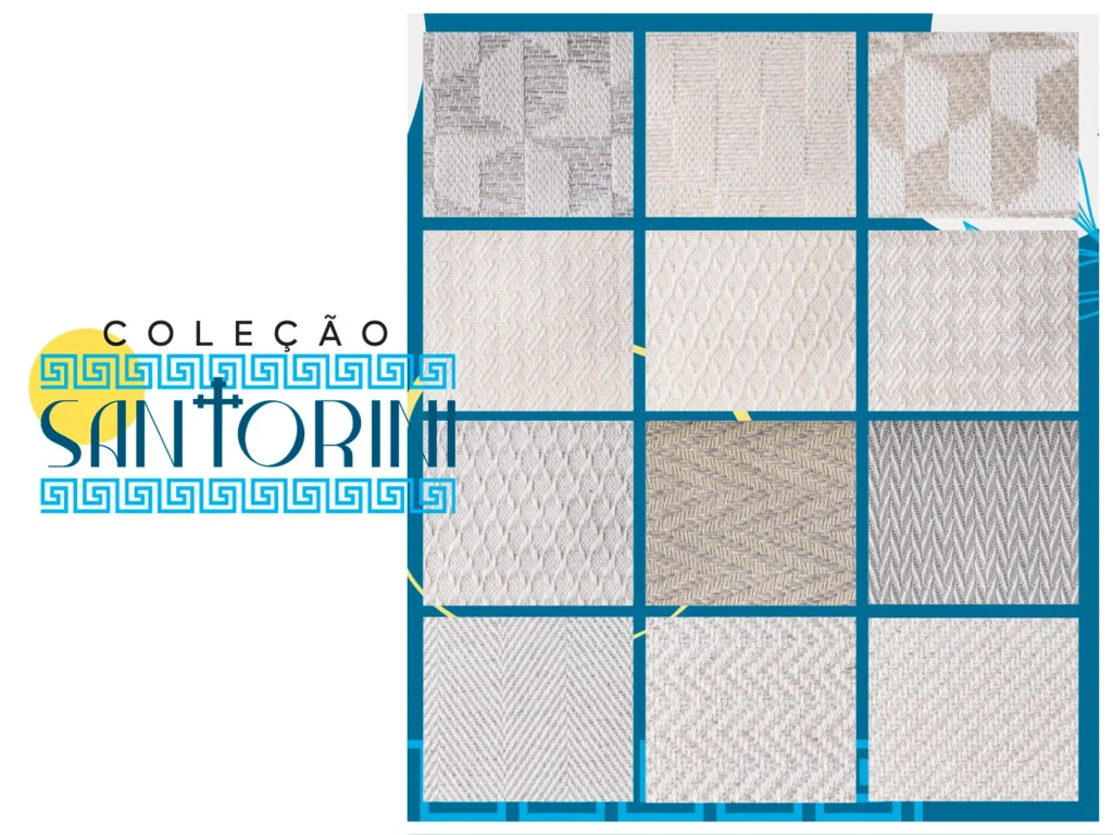 A Coleção Santorini é conhecida por suas tramas geométricas e cores personalizadas, como marrom, cinza, preto e até coloridas. Com base em fios naturais de algodão, este forro é uma escolha alegre e vibrante para projetos de autoria, podendo ser facilmente harmonizado com revestimentos, móveis e pinturas.