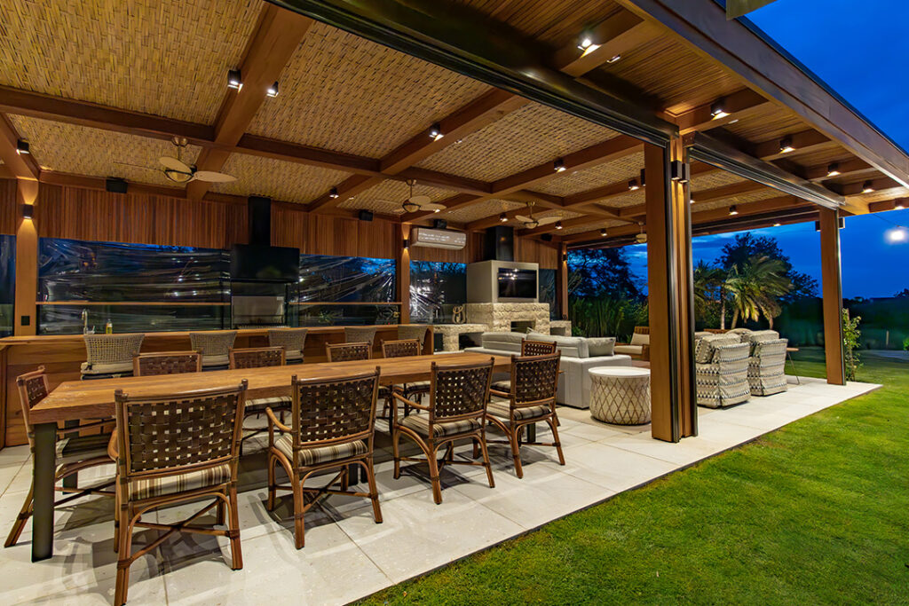 Um pergolado de madeira na fachada é uma adição valiosa e multifuncional à sua casa. Ele pode transformar a entrada, funcionar como uma elegante garagem, ou até mesmo oferecer uma expansão de sombra em uma varanda existente. Tal estrutura não só aumenta a sofisticação e o luxo da casa, como também oferece um espaço funcional para convivência ou utilidade prática. Recentemente, nota-se a tendência das garagens de estar, onde o pergolado transforma a área em um espaço criativo e personalizado.