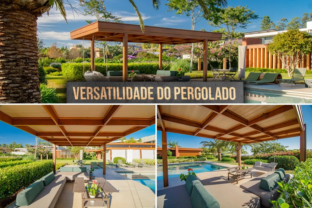 Um pergolado de madeira, nesse contexto, não só complementa o design original, mas também valoriza o ambiente, criando um espaço convidativo para reuniões e relaxamento.
