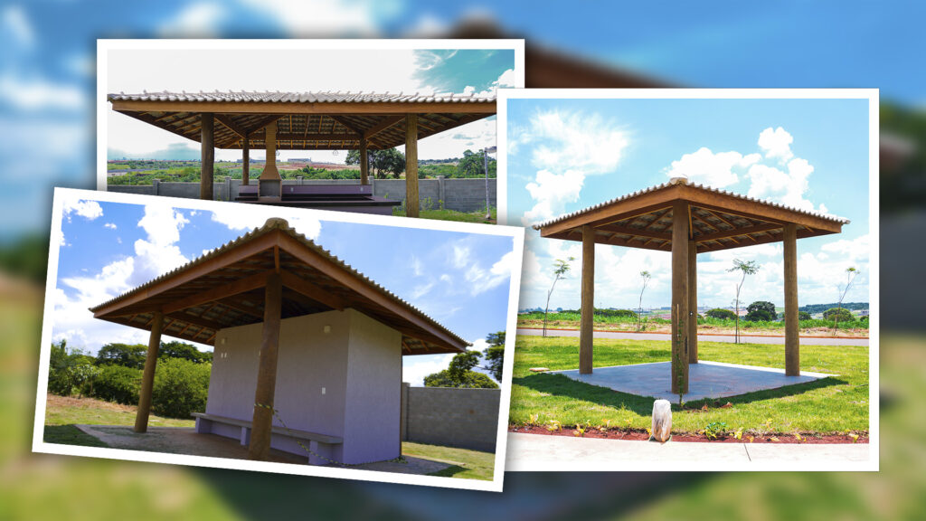 • Esses quiosques podem ser construídos em diferentes dimensões e formatos, adaptando-se ao terreno do condomínio. Além disso, combiná-los com decks de madeira melhora ainda mais o ambiente, facilitando o nivelamento de terrenos e incrementando a funcionalidade do espaço.